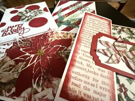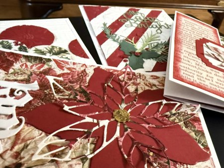 Who can't use a few extra Christmas cards, just in case? Though it's late in the season for festive card making, you never know when you might need just one more card (or four!) In this class we will be making 4 cards themed with holly and poinsettias. We will be exploring a few fun embossing folder techniques and a double fun fold card with a magnetic closure. Come join me for this enjoyable class!
